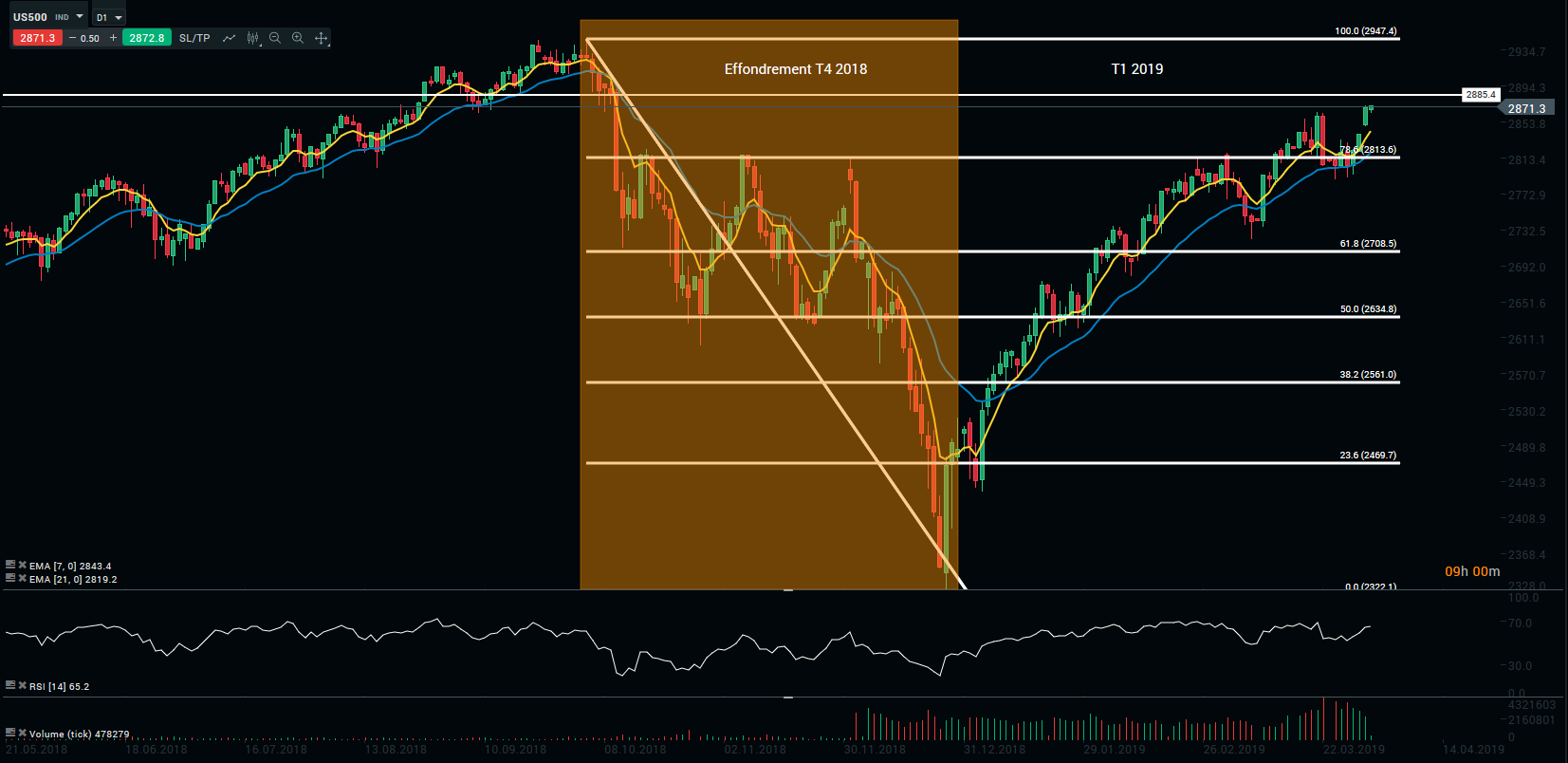 Représentation technique d’indice S&P500, D1