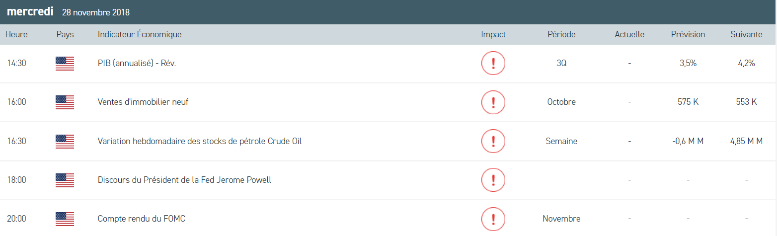 - Rapport du Département de l’Energie américain concernant les stocks hebdomadaire de pétrole à 16h30