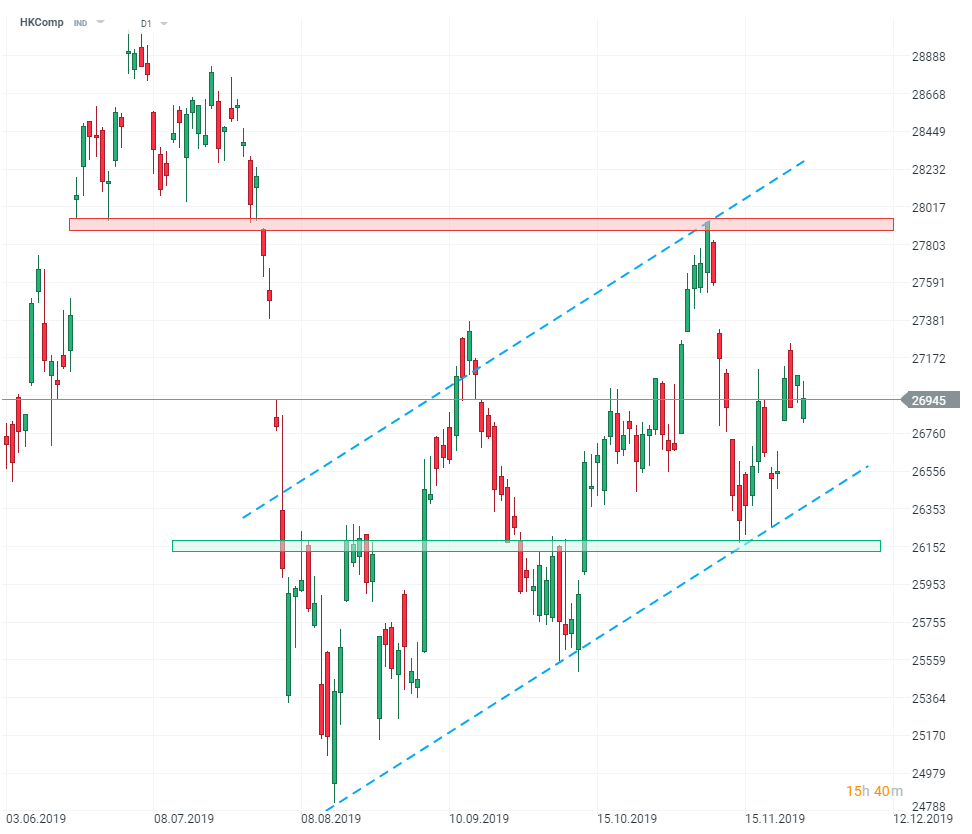 La question la plus importante sur le marché aujourd'hui, au moment où les États-Unis commencent la fête de Thanksgiving, est la signature par le président Trump de la loi sur les projets de loi de Hong Kong. Les projets de loi, déjà votés par le Congrès, soutiennent les manifestants de Hong Kong et sont perçus comme un possible problème entre les parties dans les négociations commerciales qui ont récemment suscité l'optimisme du marché. Mais qu'est-ce que ces projets de loi signifient en réalité ? Les États-Unis reconsidéreront chaque année le statut commercial spécial de Hong Kong, mais il est peu probable qu'ils le modifient, car il toucherait la population de Hong Kong beaucoup plus que la Chine. Il est également peu probable que Trump impose des sanctions aux fonctionnaires et l'interdiction des exportations de gaz lacrymogènes et de balles en caoutchouc a également une importance marginale. Le geste est surtout symbolique et les répercussions dépendront de la réaction chinoise. Les manifestants de Hong Kong tenteront certainement de tirer parti de ce symbole - ils ont déjà annoncé un rassemblement pro-américain, ce qui pourrait susciter l'indignation à Pékin. Maintenant, les responsables chinois devront peser les conséquences de leur réponse au-delà de la formulation.