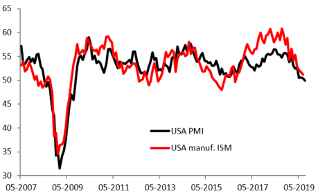 Nous attendons toujours les indices ISM des États-Unis pour août, mais les indices PMI publiés plus tôt offrent déjà un tableau noircissant de la plus grande économie mondiale. Le PMI manufacturier est passé sous la barre des 50 pour la première fois au cours de cette décennie et, bien que celui des industries non manufacturières soit plus élevé, il a enregistré une détérioration plus importante de 2,1 points (à 50,9 points). La semaine dernière, nous avions écrit que le côté consommateur de l'économie américaine demeurait relativement résistant, mais une détérioration observée du climat des affaires contredit les déclarations du président américain selon lesquelles l'économie américaine "se portait vraiment bien".