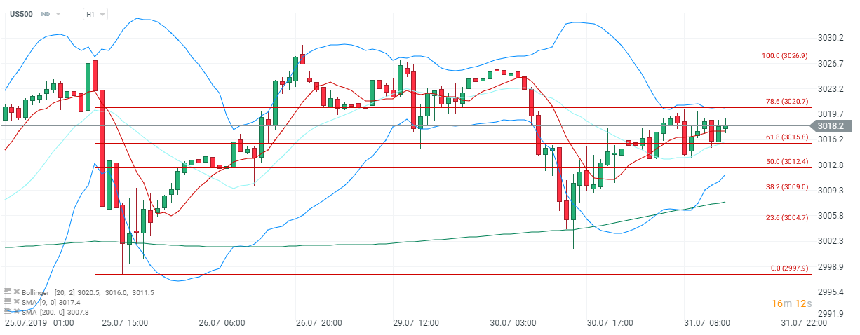L’indice S&P500 se maintient au-dessus de sa zone de support située autour des 3015 points correspondante aux 61.8 % des retracements de Fibonacci. Source: xStation5.