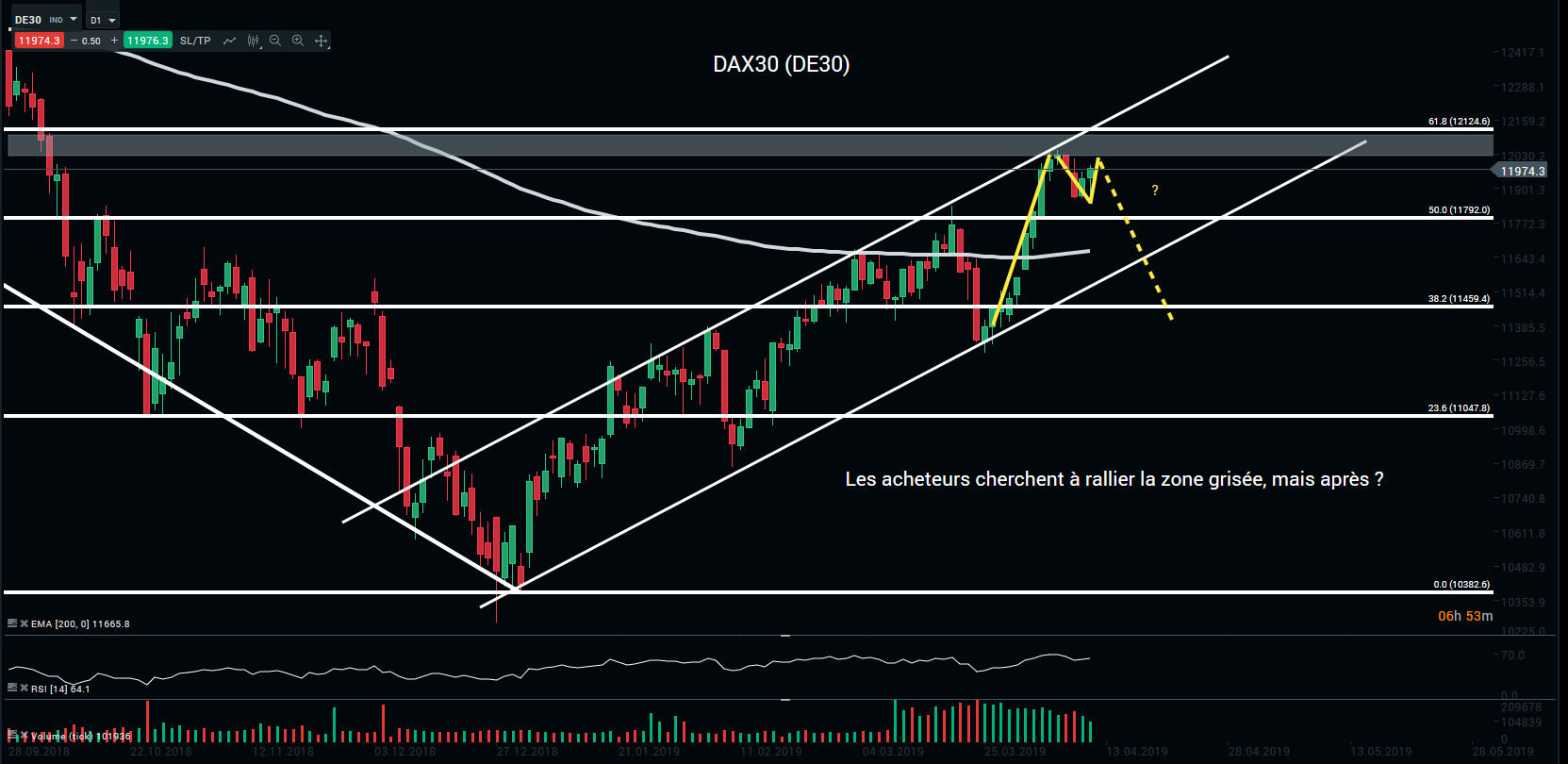 Représentation technique de l’indice DAX30, en D1