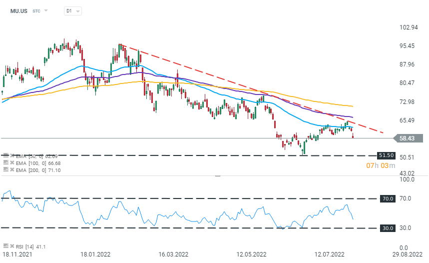 Micron Technology (MU.US); (-5.2%), D1. Source: xStation 5