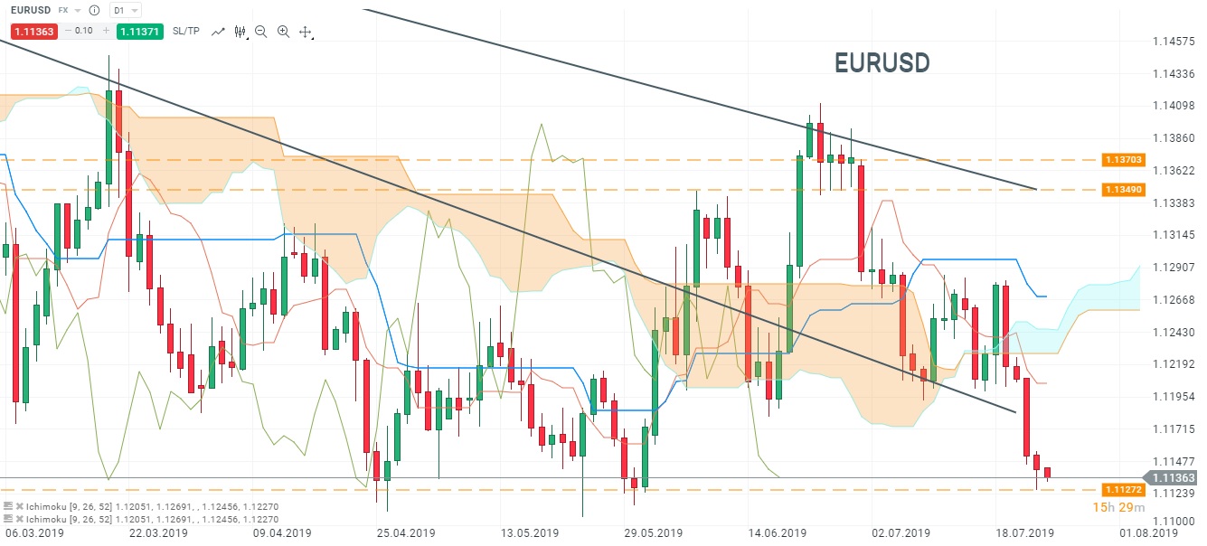L'EUR/USD en données journalières, sur ses plus bas annuels. Source : Xstation 5