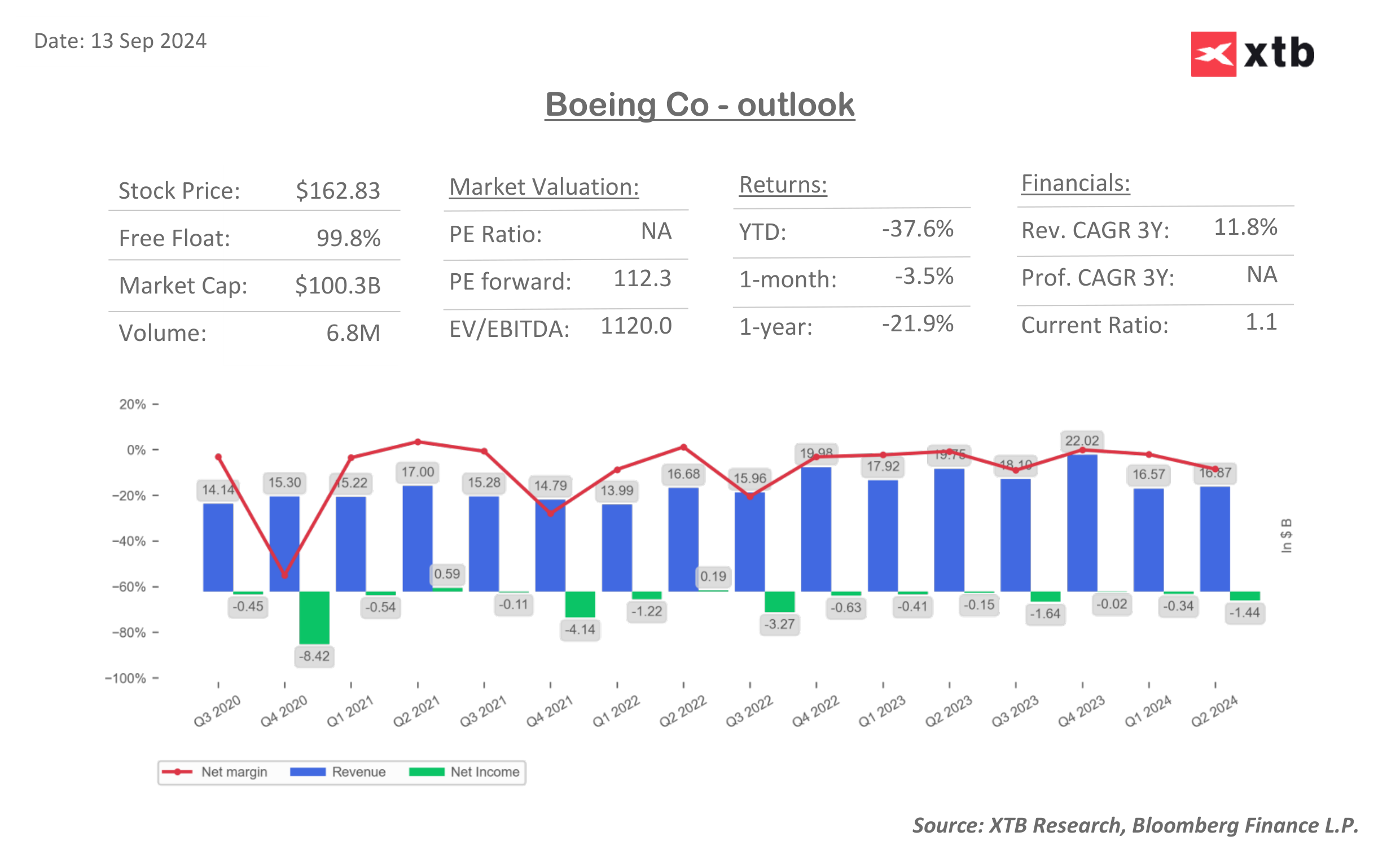 Les actions de Boeing ont chuté de près de 5 % dans les échanges avant l'ouverture, atteignant ainsi le niveau le plus bas depuis novembre 2022. Source : xStation