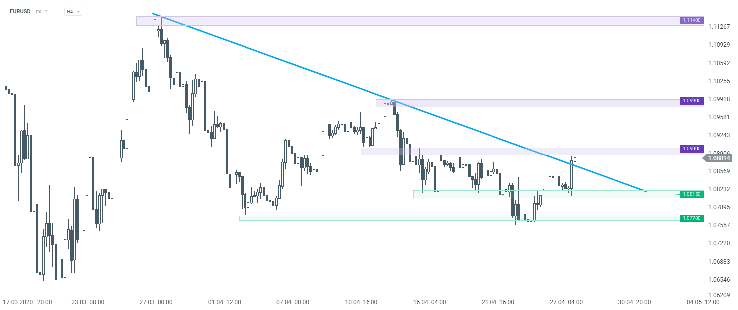 Deux grandes banques centrales vont annoncer des décisions monétaires cette semaine: la Fed et la BCE. Bien que le marché ne s'attende pas à des modifications du niveau des taux, les investisseurs attendent avec intérêt des indices sur les achats d'actifs et d'autres actions récentes. La Fed annoncera une décision mercredi tandis que la décision de la BCE est prévue pour jeudi. Jetons un coup d'œil à la situation technique actuelle sur la paire de devises principale l'EURUSD, l'indice US500 et l'or.