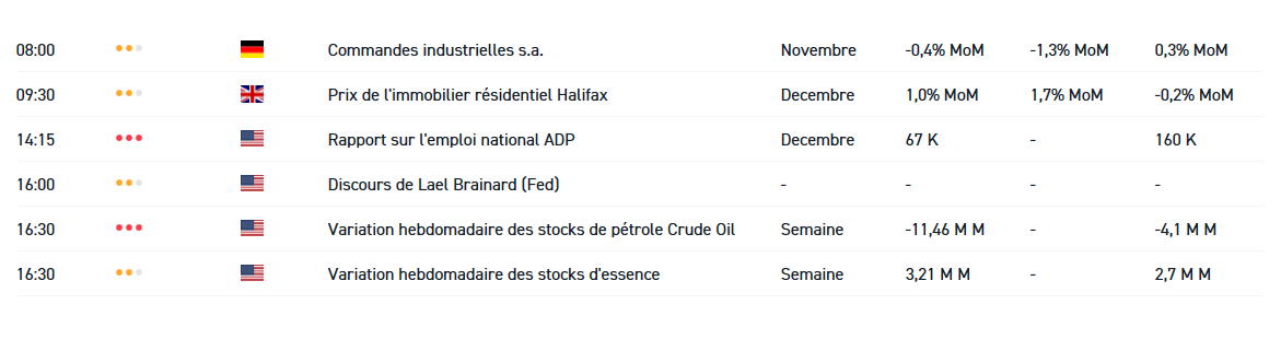 "Ce contenu est une communication marketing au sens de l'art. 24, paragraphe 3, de la directive 2014/65 /UE du Parlement européen et du Conseil du 15 mai 2014 concernant les marchés d'instruments financiers et modifiant la directive 2002/92 /CE et la directive 2011/61 /UE (MiFID II). La communication marketing n'est pas une recommandation d'investissement ou une information recommandant ou suggérant une stratégie d'investissement au sens du règlement (UE) n°596/2014 du Parlement européen et du Conseil du 16 avril 2014 sur les abus de marché (règlement sur les abus de marché) et abrogeant la directive 2003/6 / CE du Parlement européen et du Conseil et directives 2003/124 / CE, 2003/125 / CE et 2004/72 / CE de la Commission et règlement délégué (UE) 2016/958 de la Commission du 9 mars 2016 complétant le règlement (UE) n°596/2014 du Parlement européen et du Conseil en ce qui concerne les normes techniques de réglementation relatives aux modalités techniques de présentation objective de recommandations d'investissement ou d'autres informations recommandant ou suggérant une stratégie d'investissement et pour la divulgation d'intérêts particuliers ou d'indications de conflits d'intérêt ou tout autre conseil, y compris dans le domaine du conseil en investissement, au sens de l'article L321-1 du Code monétaire et financier. L’ensemble des informations, analyses et formations dispensées sont fournies à titre indicatif et ne doivent pas être interprétées comme un conseil, une recommandation, une sollicitation d’investissement ou incitation à acheter ou vendre des produits financiers. XTB ne peut être tenu responsable de l’utilisation qui en est faite et des conséquences qui en résultent, l’investisseur final restant le seul décisionnaire quant à la prise de position sur son compte de trading XTB. Toute utilisation des informations évoquées, et à cet égard toute décision prise relativement à une éventuelle opération d’achat ou de vente de CFD, est sous la responsabilité exclusive de l’investisseur final. Il est strictement interdit de reproduire ou de distribuer tout ou partie de ces informations à des fins commerciales ou privées. Les performances passées ne sont pas nécessairement indicatives des résultats futurs, et toute personne agissant sur la base de ces informations le fait entièrement à ses risques et périls. Les CFD sont des instruments complexes et présentent un risque élevé de perte rapide en capital en raison de l'effet de levier. 75% de comptes d'investisseurs de détail perdent de l'argent lors de la négociation de CFD avec ce fournisseur. Vous devez vous assurer que vous comprenez comment les CFD fonctionnent et que vous pouvez vous permettre de prendre le risque probable de perdre votre argent. Avec le Compte Risque Limité, le risque de pertes est limité au capital investi."
