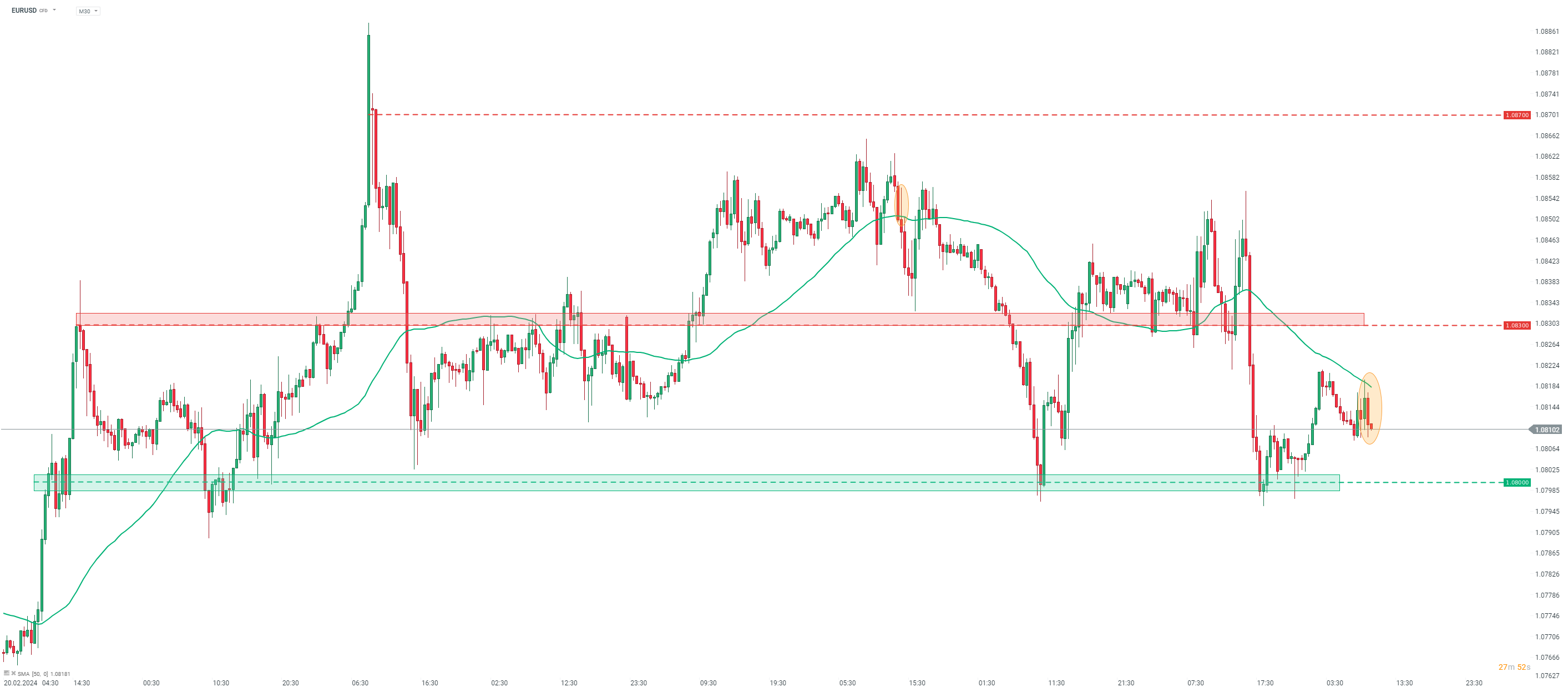 L'EURUSD a légèrement baissé suite aux révisions des PMI manufacturiers de février. Source : xStation5