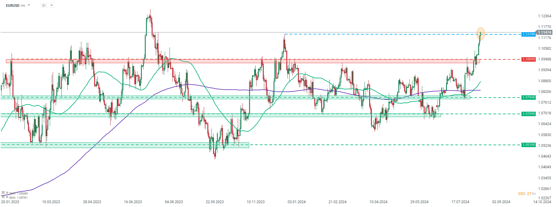 La paire EURUSD est en hausse d'environ 0,2 % aujourd'hui et tente de dépasser les sommets de décembre 2023 à 1,1139. Cela signifie que la paire de devises principale se négocie maintenant à ses plus hauts niveaux depuis plus d'un an. Plus précisément, les niveaux les plus élevés depuis fin juillet 2023.