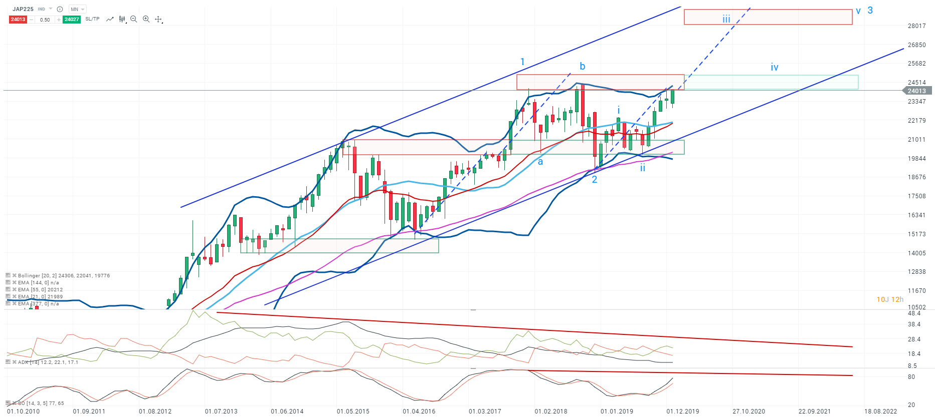 Point technique : L’indice NIKKEI en mensuel (actif négociable sur xStation JAP225)