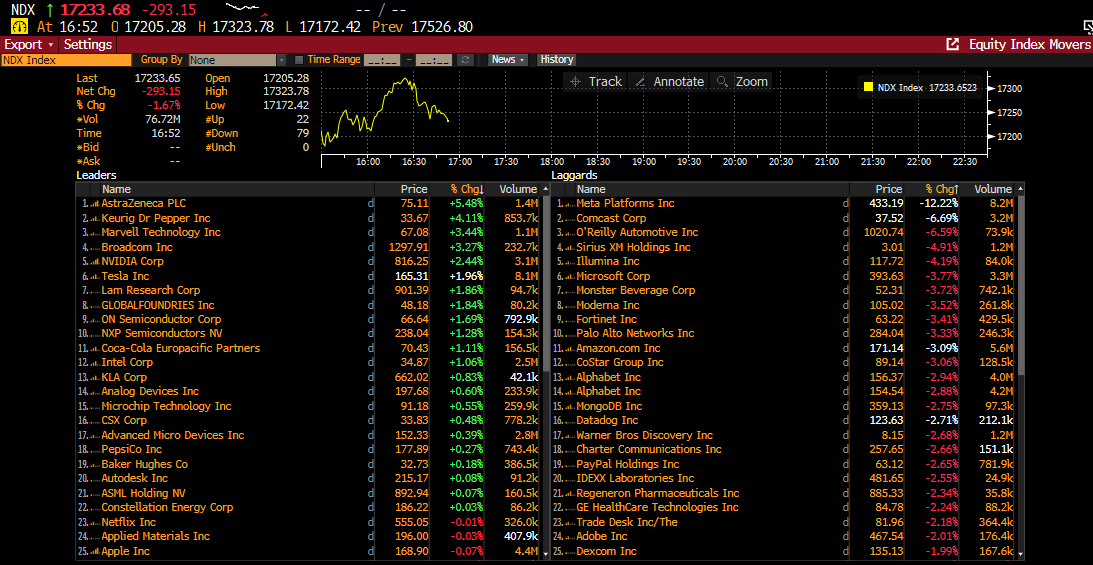 De nombreuses entreprises technologiques clés sont en train de perdre aujourd'hui. Source: Bloomberg Finance LP