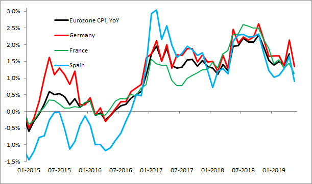 L’inflation mesurée par l’IPC dans les pays membres de l’UE a considérablement ralenti en mai. Un tel résultat donne peu de marge de manœuvre à la BCE lors de la prochaine réunion (6 juin, 12h45). Source: xStation5