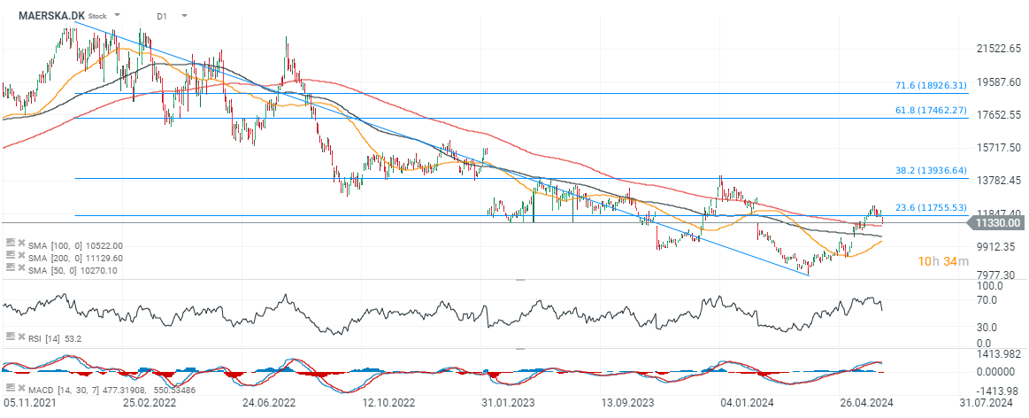 Les actions des principaux opérateurs mondiaux de porte-conteneurs tels que Hapag Lloyd (HLAG.DE), ZIM (ZIM.US) et Maersk (MAERSKA.DK) ont été mises sous pression aujourd'hui. Le plus grand transporteur mondial de conteneurs, Maersk, a baissé de 5% aujourd'hui et a été sous pression pendant plusieurs jours après que la Deutsche Bank ait rétrogradé la société.
