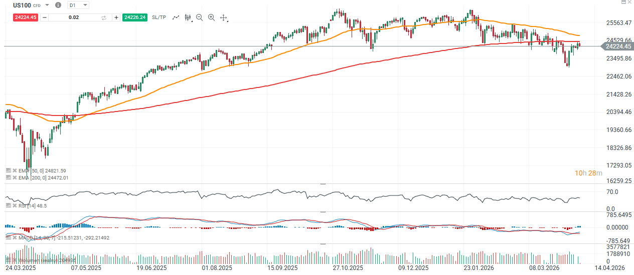 Les marchés américains repartent à la baisse, avec des futures du Nasdaq 100 (US100) en recul de plus de 0,5%, alors que la situation géopolitique au Moyen-Orient s’aggrave rapidement. L’ultimatum fixé par Donald Trump à 2h00 (heure de Paris) n’a, à ce stade, débouché sur aucune avancée diplomatique, renforçant les craintes d’une escalade majeure.