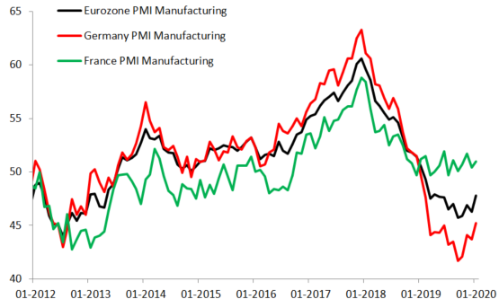 La fabrication en Europe a été durement touchée en 2019, les producteurs frappant un mur de baisse de la demande avec une capacité excessive. Bien que la récession ait été plus profonde que prévu, il y a des signes de stabilisation. Comment interpréter les données? Premièrement, les dépenses de consommation sont restées solides tout au long du processus, soutenues en outre par un assouplissement monétaire panique (même si légèrement inefficace). Lorsque les entreprises ont parcouru leurs stocks, elles ont pu augmenter quelque peu leur activité et nous le constatons dans les données. Bien que cela soit positif, sans relance de la demande (ce qui, selon nous, est peu probable), une reprise superficielle est probablement le meilleur que l’Europe puisse espérer.