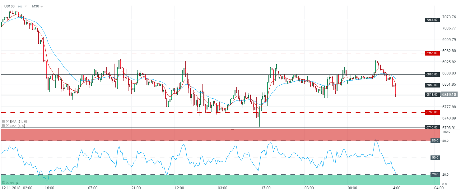 Décidément les séances se suivent et les problématiques semblent demeurer inchangées. Et pour cause, l’indice Nasdaq sera aujourd’hui sous pression avec d’un côté Apple et de l’autre côté l’incertitude autour d’un accord commerciale sino-américain. Pour commencer Apple a une nouvelle fois ouvert en gap baissier aujourd’hui et accuse un repli de 2,42 % au moment ou non écrivons ces lignes. Les investisseurs sont toujours préoccupés par les inquiétudes entourant le ralentissement de la demande d’iPhone. A présent c’est au tour de l’assembleur d’iPhone Foxconn de réduire ses heures supplémentaires. Du côté de l’accord commercial sino-américain, les propos de Mike Pence pèsent sur les indices. Les investisseurs resteront donc attentifs aux propos de Donald Trump sur ce dossier - à savoir si les propos tenus par son Vice-Président seront confirmés ou au contraire infirmés. Pour rappel, la réunion du G20 en Argentine se déroulera la semaine prochaine - réunion en marge de laquelle Donald Trump et son homologue chinois Xi Jinping ont prévu de discuter de ce conflit commercial et de travailler sur la résolution de ce dernier.