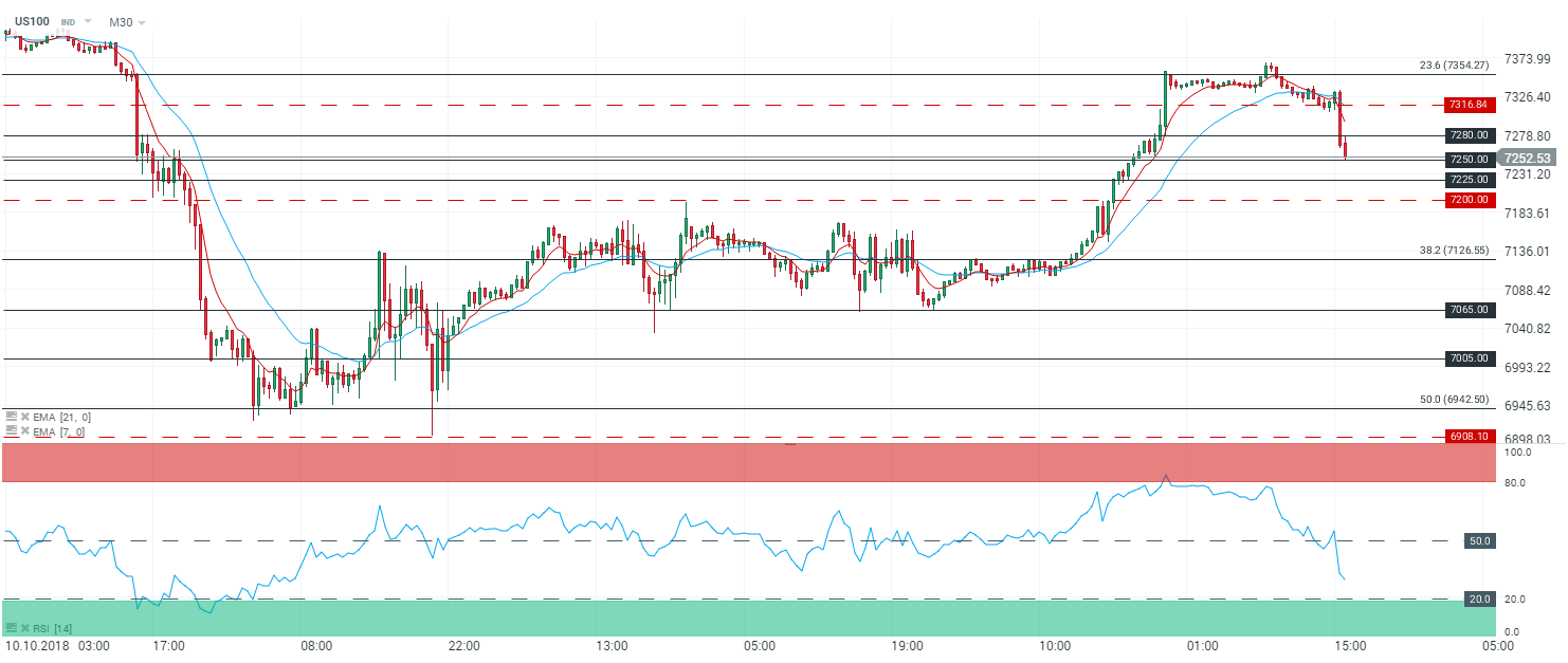 Représentation de l’indice (US100), en 30 minutes