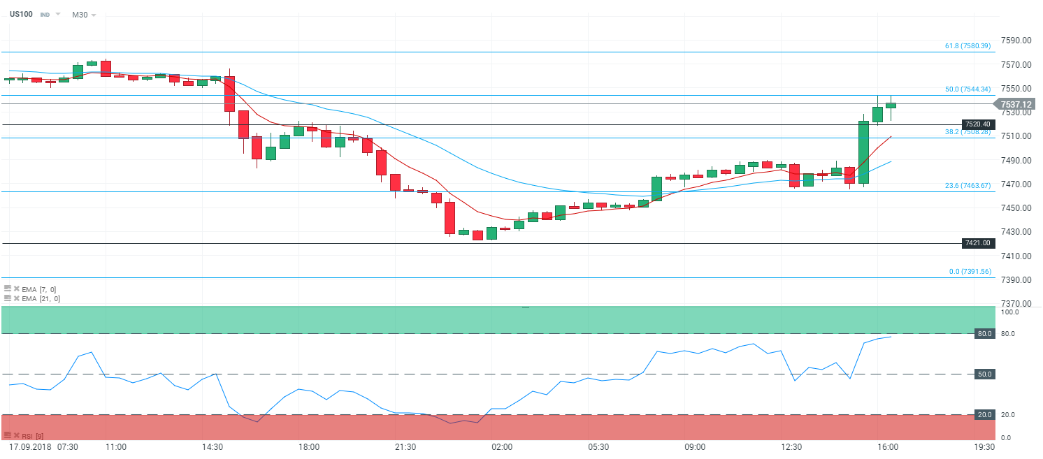 Représentation de l’indice Nasdaq (US100), en 30 minutes (M30)