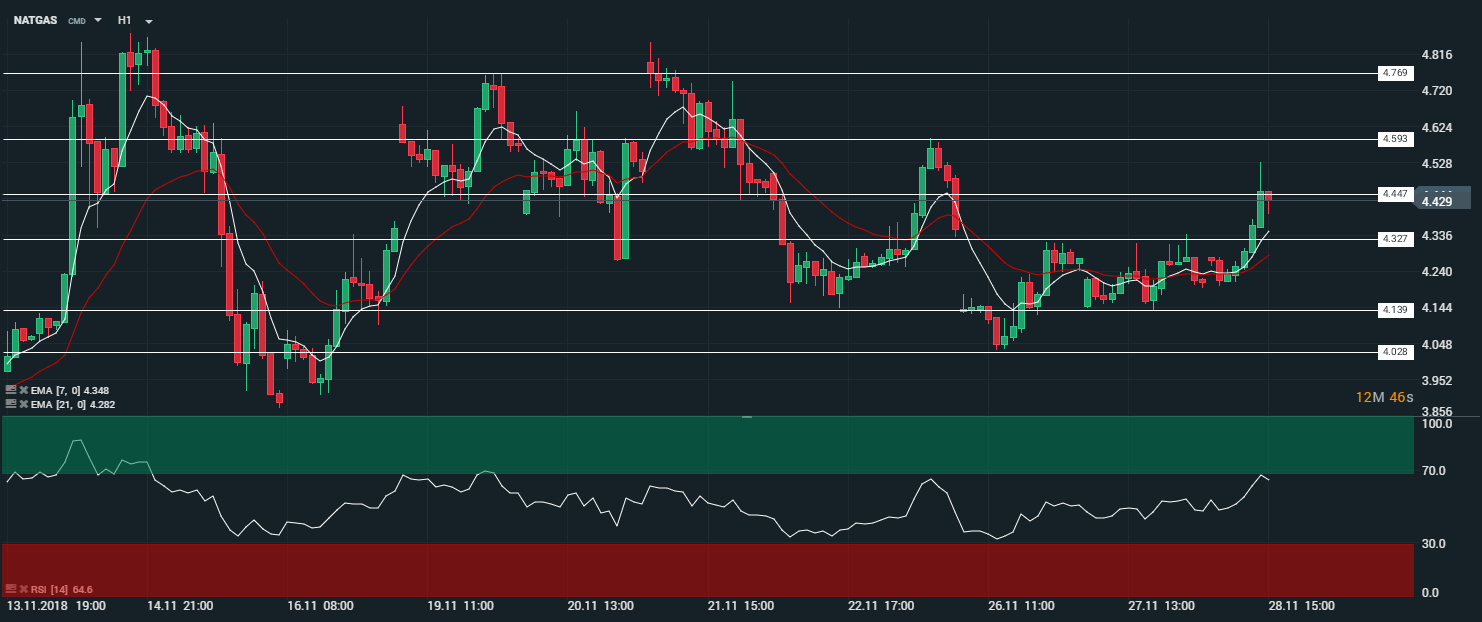 Représentation du Natgas (NATGAS) en unité de temps horaire (H1)