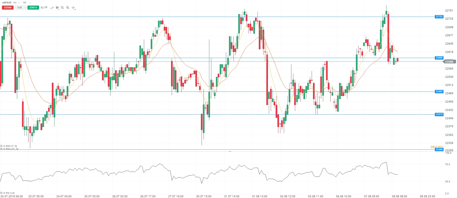 La Bourse de Tokyo a clôturé en baisse de 0,08% mardi au niveau des 22 644 points. Les valeurs technologiques japonaises ont progressé dans le sillage de leurs homologues américains. Par ailleurs, Nikon a grimpé de près de 10% suite à une révision à la hausse de son bénéfice net annuel et la perspective d’augmentation de son dividende. En dépit de ces bonnes performances, la prudence était de mise à la veille d’une rencontre importante entre le Japon et les Etats-Unis au sujet du commerce. En effet, le ministre japonais de l’Economie, Toshimitsu Motegi, doit rencontrer jeudi à Washington Robert Lighthizer, représentant américain au Commerce. Enfin, sur le marché des changes, le yen se renforce face au dollar et la paire USDJPY fluctue au niveau des 110,91 yens pour un dollar. D’un point de vue technique, les cours évoluent sous les moyennes mobiles (à 7 et 21 périodes) en unité de temps horaire (H1). Le RSI est orienté à la baisse autour de sa zone de neutralité. En conclusion, nous avons un biais vendeur avec comme objectif le niveau des 22 492 points.