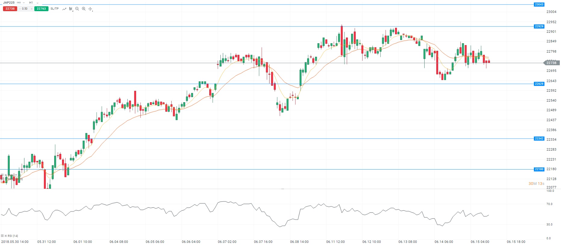 Représentation technique du Nikkei 225, en H1