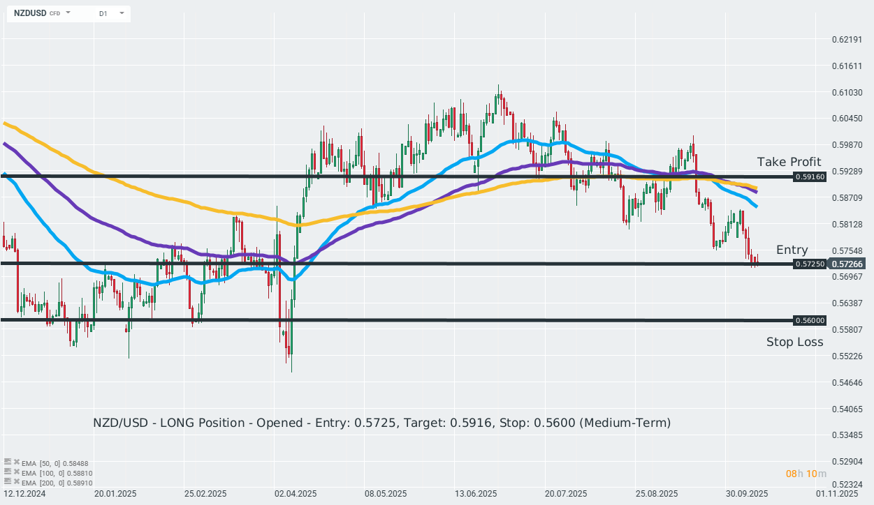 Crédit Agricole Research recommande de prendre une position acheteuse sur la paire NZDUSD au prix du marché, avec un objectif de 0,5916 et un ordre Stop Loss à 0,5600. Source : xStation5