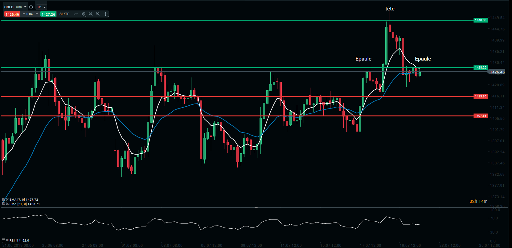 Sur le plan technique, sur un horizon H4, l’inquiétude des opérateurs se matérialise par la formation d’une épaule-tête-épaule. Pour l’heure, la figure n’est pas validée. Il faudra attendre les réunions des banquiers centraux européens américains et asiatiques détecter la tendance de fond.