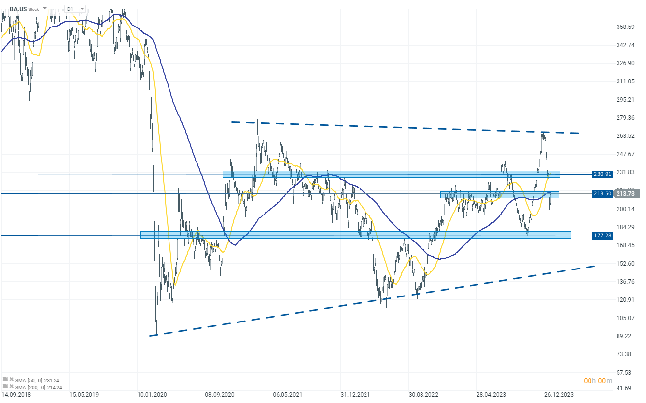 Boeing (BA.US) - la Federal Aviation Administration (FAA) a prolongé son examen de Boeing (BA.US) en recommandant des inspections des bouchons de porte du modèle 737-900ER, suite à des problèmes similaires constatés sur le Max 9 utilisé sur le vol 1282 d'Alaska Airlines. Cela fait suite à une défaillance du bouchon de porte à 16 000 pieds lors d'un vol récent, entraînant la mise à l'arrêt de 171 avions Max 9. La recommandation de la FAA vise à renforcer la sécurité, suite à des rapports de problèmes de boulons sur certains avions 737-900ER. Boeing, confronté à un examen approfondi de la qualité de sa fabrication, soutient l'appel de la FAA à davantage d'inspections. Les principaux opérateurs du 900ER comprennent United Airlines, Alaska Airlines et Delta Air Lines, entre autres.