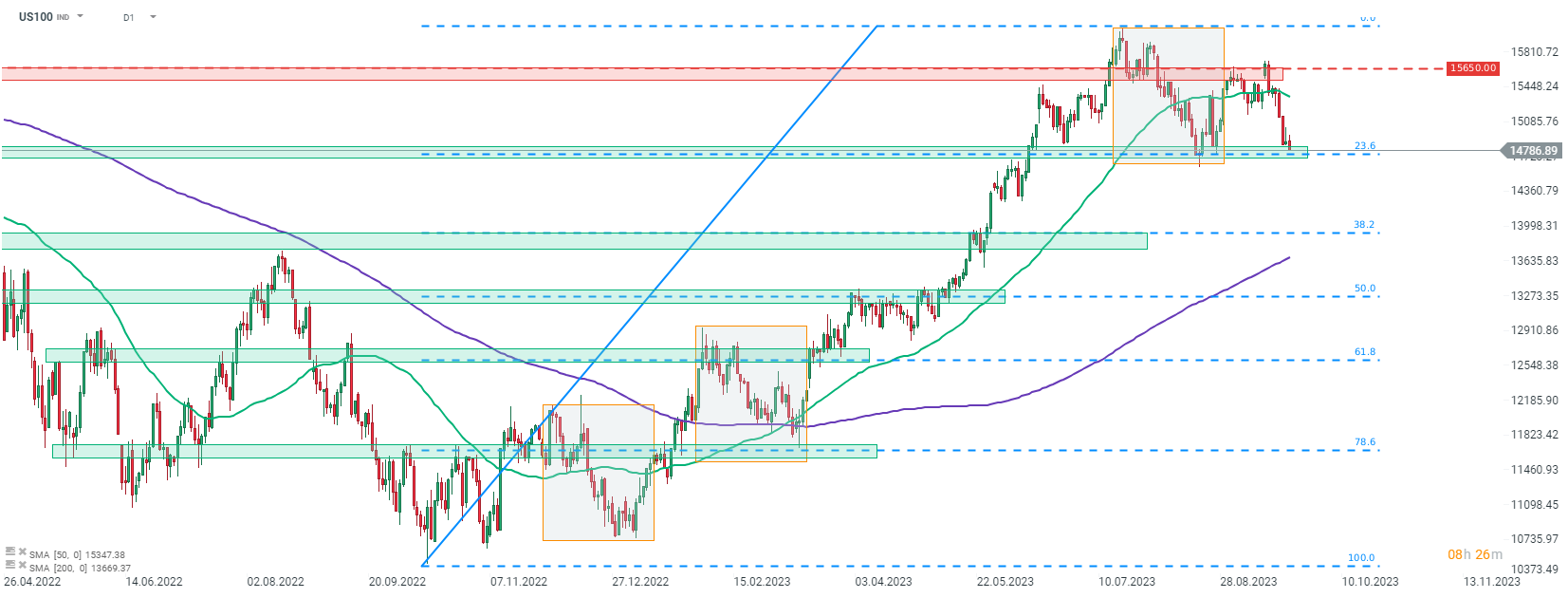 - Le US100 a testé le support au niveau de retracement de 23,6%.