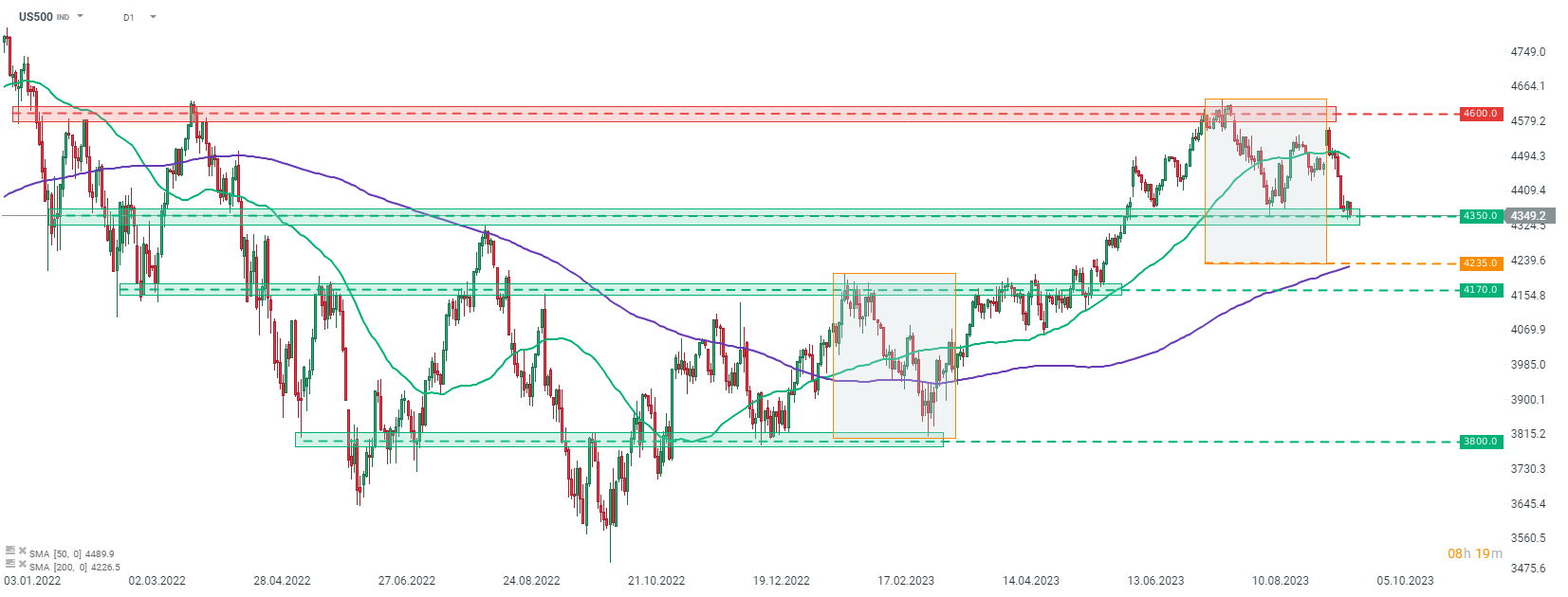 - L'US500 tente une nouvelle fois d'atteindre le support de 4350 points