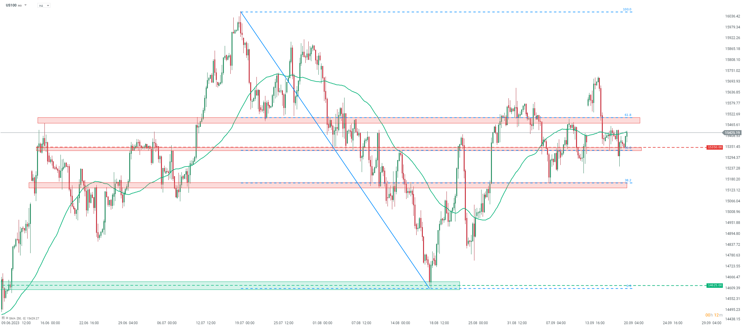 Les contrats à terme sur le Nasdaq-100 (US100) se négocient légèrement à la hausse pour la journée. Cependant, l'ampleur de ces gains n'est pas massive et de l'attentisme peut être observé sur les marchés. L'indice tente de dépasser la moyenne mobile à 50 périodes à l'intervalle H4 mais les bulls n'ont pour l'instant pas réussi à franchir cet obstacle technique. Une résistance clé à court terme à surveiller se trouve dans la zone des 15 500 pts où se trouve le retracement de 61,8% de la correction de juillet-août. Une zone comprise entre la marque des 15 350 pts et le retracement de 50% est un support clé à court terme.