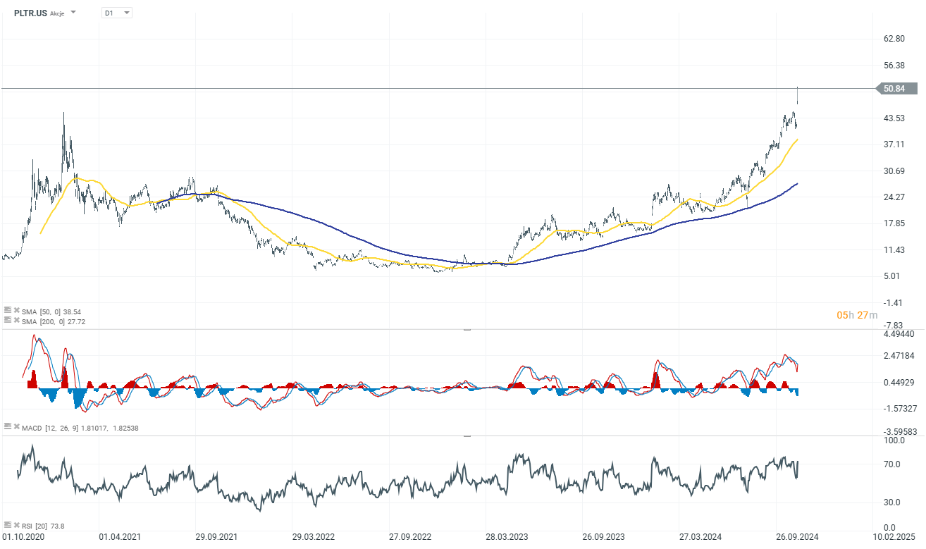 Palantir Technologies (PLTR.US) gagne jusqu'à 23 %, atteignant des sommets record après de très bons résultats au troisième trimestre qui ont dépassé les attentes. La performance financière impressionnante de l'entreprise, tirée par la forte demande pour ses applications d'IA parmi les clients du gouvernement américain et les clients commerciaux, a contribué à ce rallye euphorique. Le chiffre d'affaires du trimestre a augmenté de 30 % en glissement annuel pour atteindre 725,5 millions de dollars, dépassant ainsi les estimations des analystes. Le PDG Alex Karp a souligné le rôle central de l'entreprise dans la révolution de l'IA menée par les États-Unis, qui transforme les industries et alimente la demande pour les solutions d'IA de Palantir.