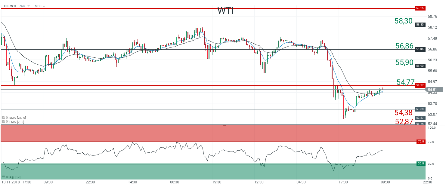 Représentation du contrat à terme WTI, en 30 minutes (M30)