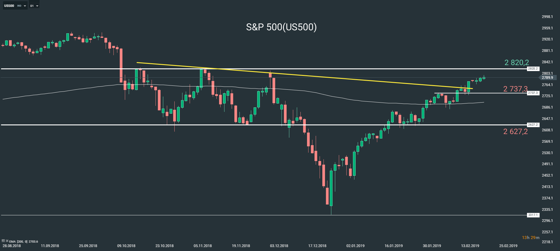 Représentation technique de l'indice S&P500, en D1