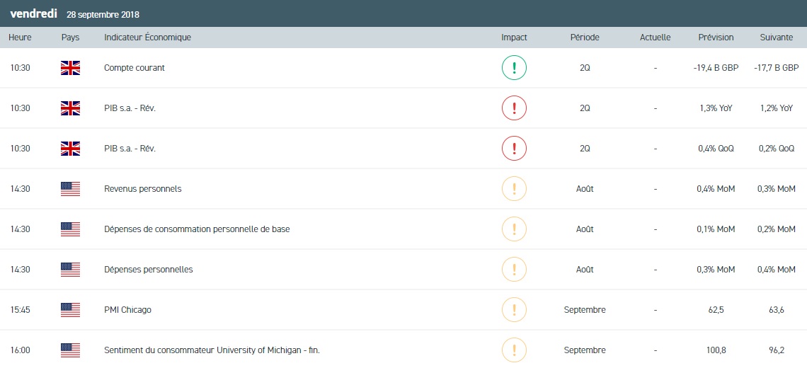 Les indices européens ont ouvert en baisse ce matin, et ce, malgré le plus haut de 27 ans sur le Nikkei 225 (24 286,10 points). A l’image de jeudi, la séance du jour sera marquée par le budget italien et une salve de statistiques économiques. En effet, nous prendrons connaissance des chiffres du chômage du mois de septembre en Allemagne, du produit intérieur brut du deuxième trimestre au Royaume-Uni et de l’indice des prix à la consommation du mois de septembre en zone euro. Concernant les Etats-Unis, nous prendrons connaissance des dépenses et revenus des ménages du mois d’août, de l’indice PMI Chicago du mois de septembre et de l’activité pétrolière de la semaine, selon Baker Hughes. Décryptage.
