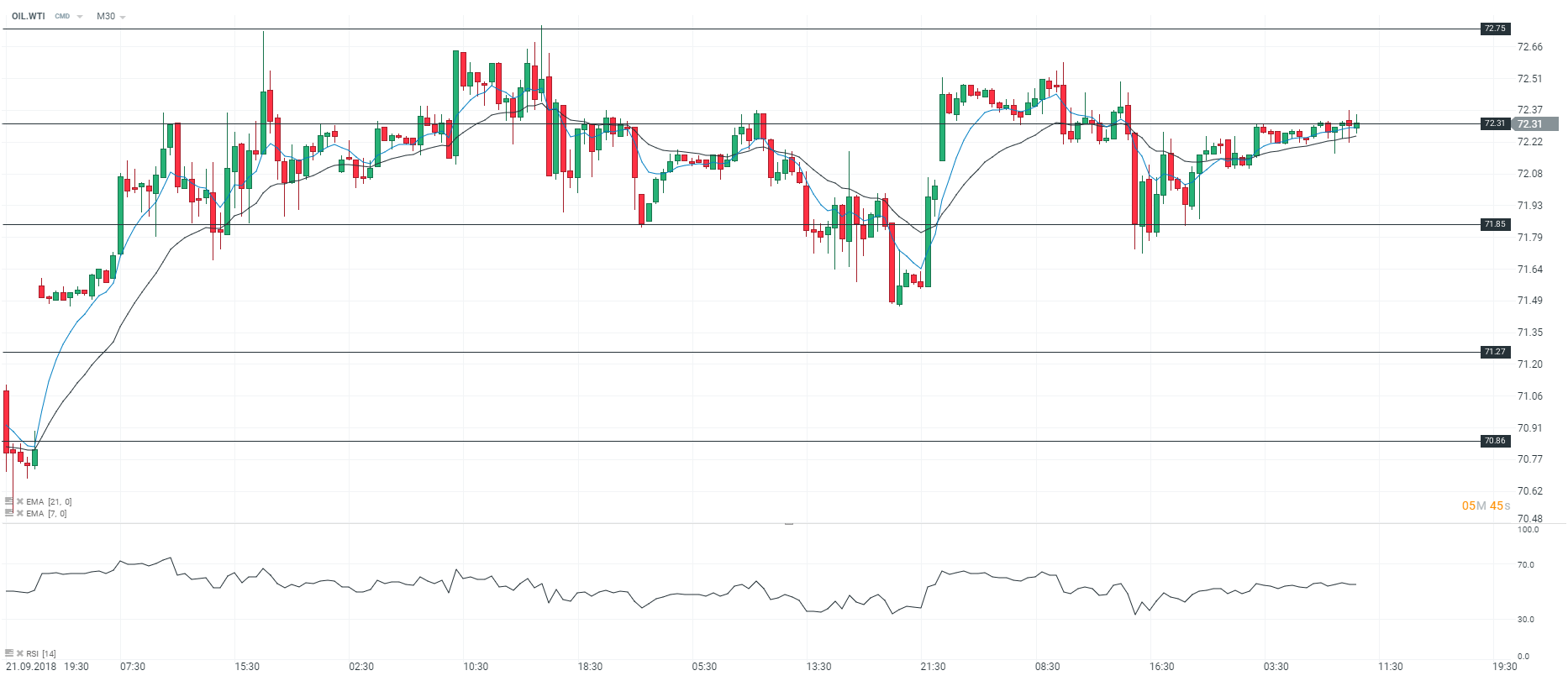 Concernant les matières premières, le contrat WTI a clôturé en hausse de 0,77 % à 72,12 dollars le baril. Evidemment, les cours du pétrole sont portés par les perspectives de diminution de l’offre, alors que les sanctions américaines sur l’Iran doivent entrer en vigueur le 4 novembre prochain. En dépit de la hausse des stocks hebdomadaires de pétrole aux Etats-Unis, nous notons que les stocks globaux oscillent autour de 396 millions de barils et que la production journalière est d’environ 11,1 millions de barils, selon le département de l’Energie américain (DoE). Pour conclure, nous avons un avis positif sur le WTI et estimons qu’il pourrait retrouver le niveau des 72,73 $ le baril à court terme.