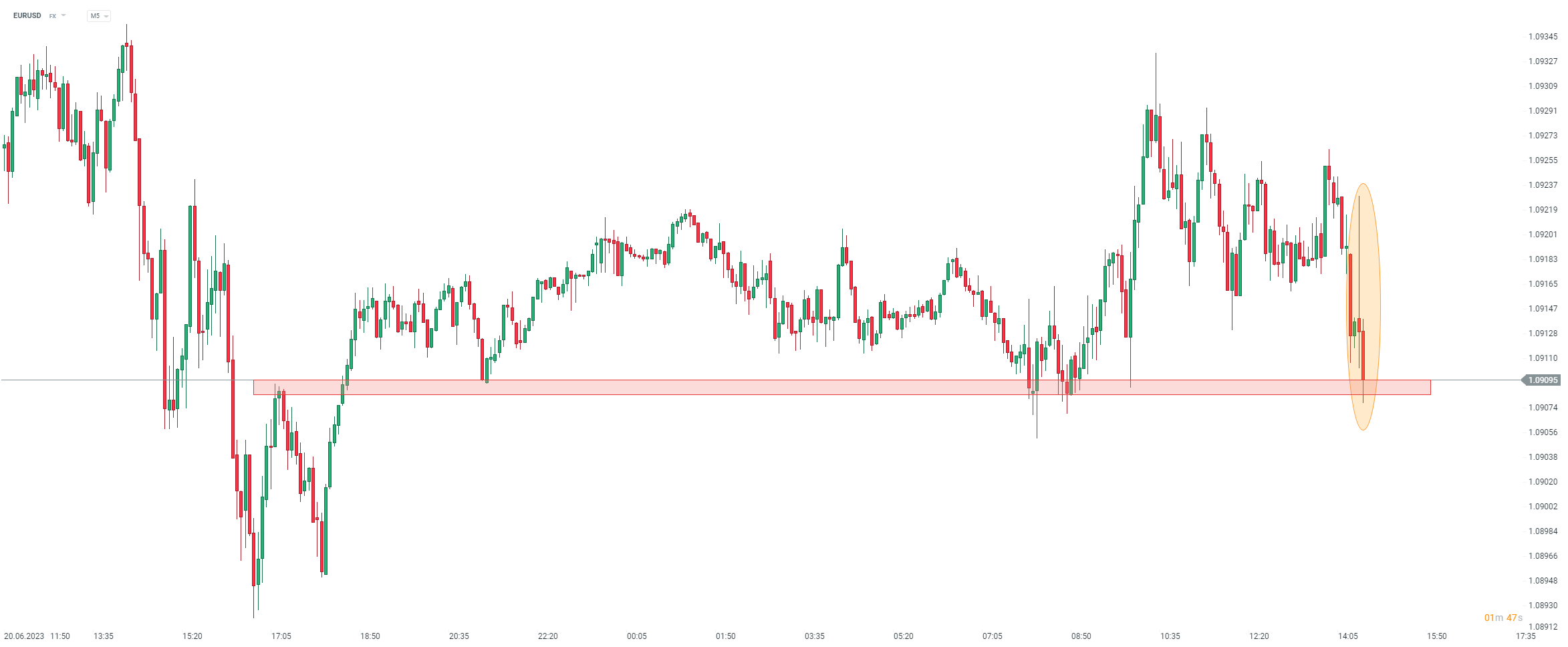 L'EURUSD a bondi dans un mouvement réflexe suite à la publication du texte du témoignage de Powell, mais a par la suite effacé ces gains et se négocie maintenant plus bas par rapport aux niveaux d'avant la publication. Source : xStation5.