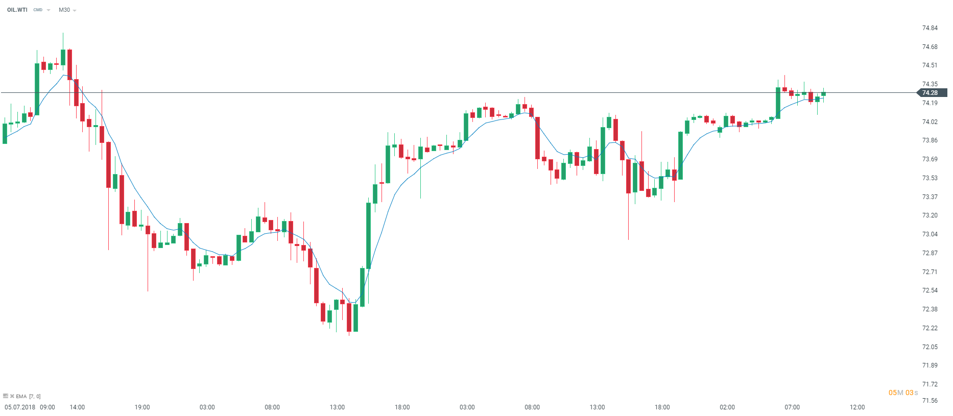 Du côté des matières premières, le WTI a clôturé lundi en légère hausse (+0,07 %) à 73,85 dollars le baril. Le marché reste porté par les perspectives de resserrement des conditions d’approvisionnement. En dépit de l’augmentation de la production en Arabie saoudite (+ 500 000 barils), le retrait des Etats-Unis de l’accord sur le nucléaire iranien provoque de vives inquiétudes sur le marché. Par ailleurs, l’usine Syncrude de sables bitumineux au Canada, va réduire ses exportations de pétrole vers les Etats-Unis jusqu’au mois de septembre en raison d’une panne. Dans un tel contexte, nous avons un biais acheteur sur le contrat WTI et pensons que l’actif devrait renouer avec le niveau des 75 $ le baril à court terme.