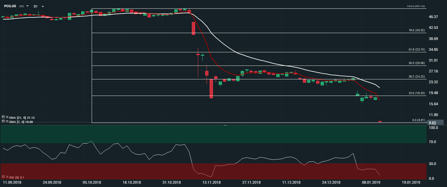 La compagnie Pacific Gas and Electric (PG&E) après une douloureuse débâcle sur les marchés, s’est déclaré en faillite. Le titre perd près de 50 %. Cela fait suite à la démission du président de la société. La compagnie va donc se placer sous la protection du chapitre 11 (loi des faillites). L’entreprise a tout de même assuré qu’elle continuerait d’assurer son activité, et que la situation actuelle n’aura aucun impact sur ses clients concernant les services de gaz et d’électricité. Les dernières catastrophes naturelles (feux de forêts) ont lourdement pesé sur le titre. Selon Reuters, PG&E fait face à de nombreux litiges et les différentes enquêtes fédérales qui pèsent sur elle l’exposent à des amendes à hauteur de 30 milliards de dollars.