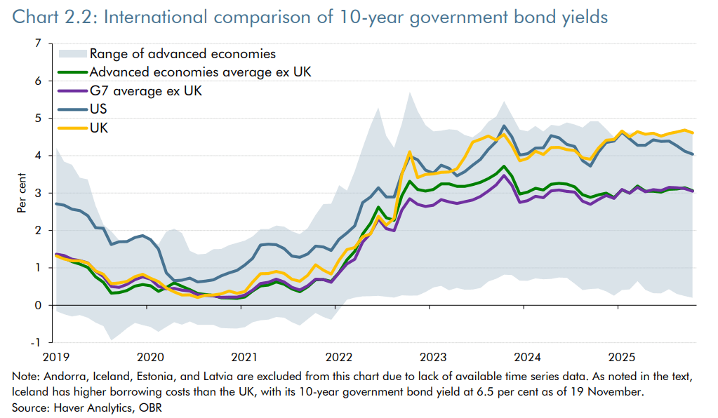 Le taux à 10 ans britannique s'est apprécié tout au long de l'année. Source: Haver Analytics, OBR
