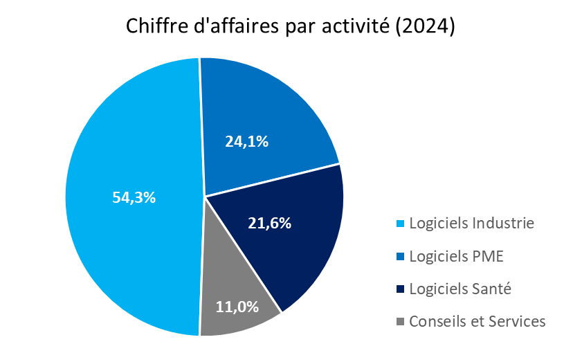 Si l’entreprise est française, elle opère majoritairement aux Etats-Unis qui regroupe un peu plus de 50% de son activité. L’Europe arrive en seconde position avec 29% du chiffre d’affaires puis vient l’Asie avec 18%. Concernant les secteurs dans lesquels DSY opère, ceux-ci sont relativement concentrés car 89% de l’activité provient de la commercialisation de logiciels. Ces logiciels sont répartis à 54% d’innovation industrielle, 24,1% d’innovation pour les PME et de 21,6% pour la santé. Les 11% de l’activité ne concernant pas la vente de logiciels proviennent d’une activité de conseil en technologie. Le groupe s’est aussi rapidement positionné sur le marché de l’intelligence artificielle en rachetant PROXEM dès 2020, lors de sa prise de participation dans Bloom en 2021 et lorsque Centric Software a racheté Stylesage en 2022.