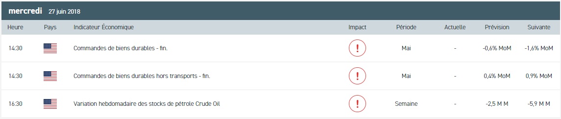 - Les commandes de biens durables du mois de mai aux Etats-Unis à 14h30
