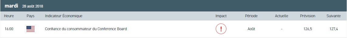 - L’indice de confiance du consommateur américain du mois d’août, selon le Conference Board
