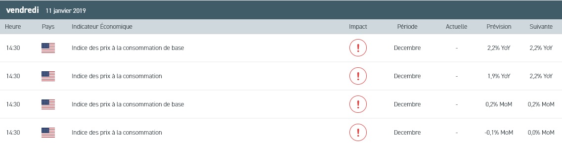 - L’indice des prix à la consommation du mois de décembre aux Etats-Unis à 14h30