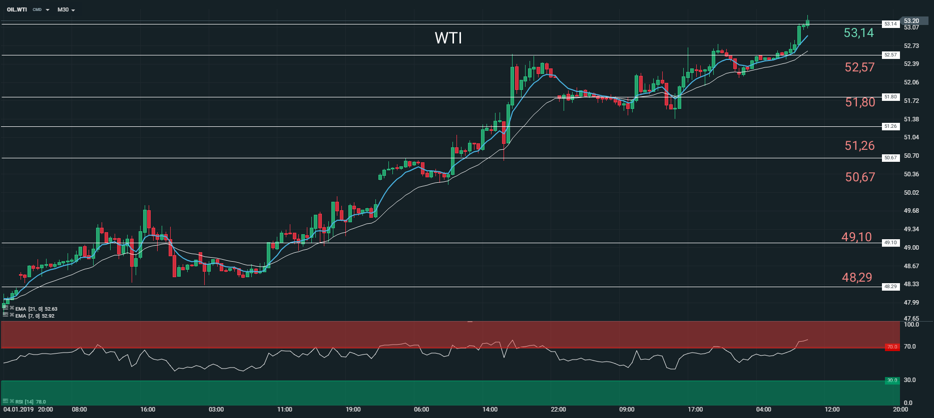Représentation technique du contrat WTI, en M30