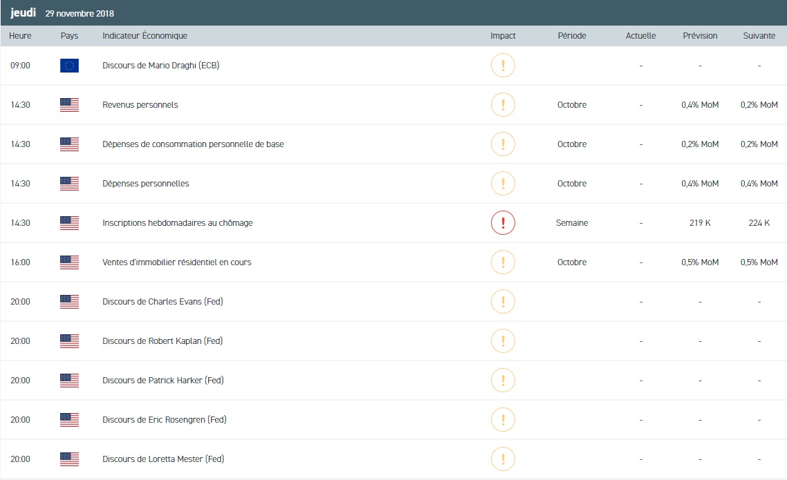 - L’indice PCE core du mois d’octobre aux Etats-Unis à 14h30