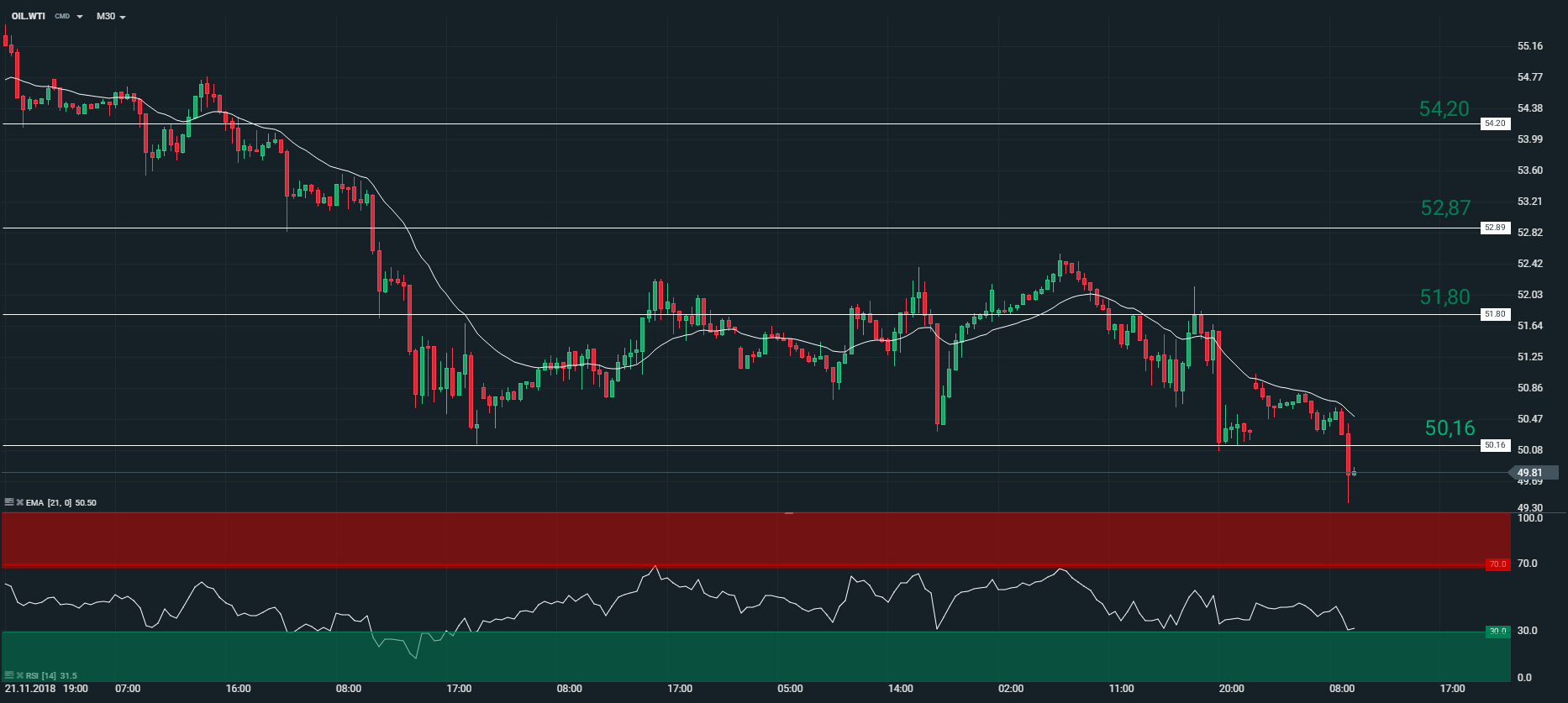 Au chapitre des matières premières, le contrat WTI a terminé en baisse de 2,41 % à 50,29 $ le baril. Inutile de le dire, la nouvelle augmentation des stocks de pétrole aux Etats-Unis a lourdement pesé dans la balance. En effet, les stocks de brut ont progressé de 3,57 millions de barils la semaine dernière. De plus, les stocks de produits distillés ont augmenté de 2,6 millions de barils sur la même période. Seul point positif, les stocks d’essence se sont contractés de 764 000 barils grâce à Thanksgiving. Au moment où nous écrivons ces lignes, le contrat WTI évolue sous le seuil des 50 $ le baril à 49,60 $ pour la première fois de l’année. Dans un tel contexte, nous avons un biais vendeur sur le WTI et pensons que la toile de fond va se poursuivre en direction des 49 $.