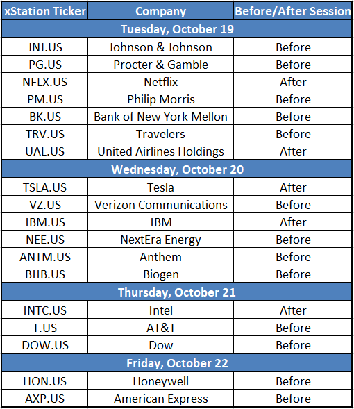 Principaux rapports de résultats américains prévus cette semaine. Source : Bloomberg, XTB