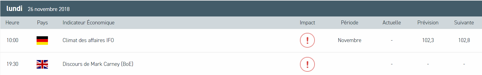 - Indice IFO du climat des affaires en Allemagne pour le mois de novembre à 10h00