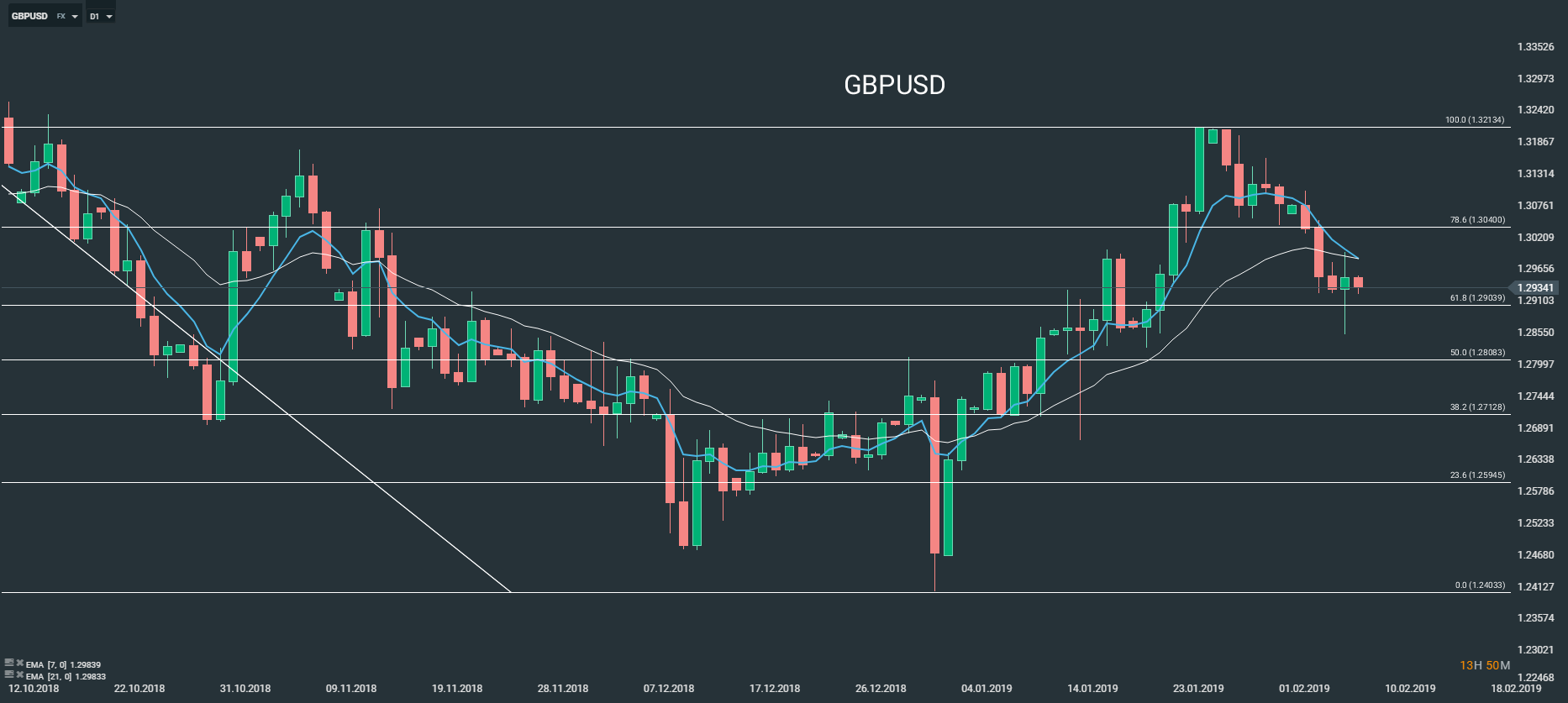 Représentation technique de la paire GBPUSD, en D1